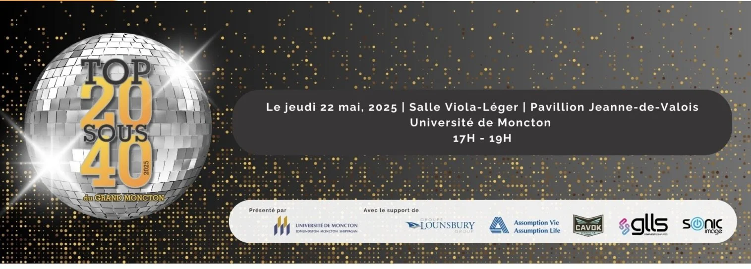 La chambre de commerce pour le grand Moncton a officiellement annonce leurs 40 finalistes pour le concours! Cette initiatiative vise à reconnaître les jeunes leaders, les artisans du changement et les visionnaires de moins de 40 ans qui ont un impact important sur notre communauté. Félicitation et bonne chance à tous!