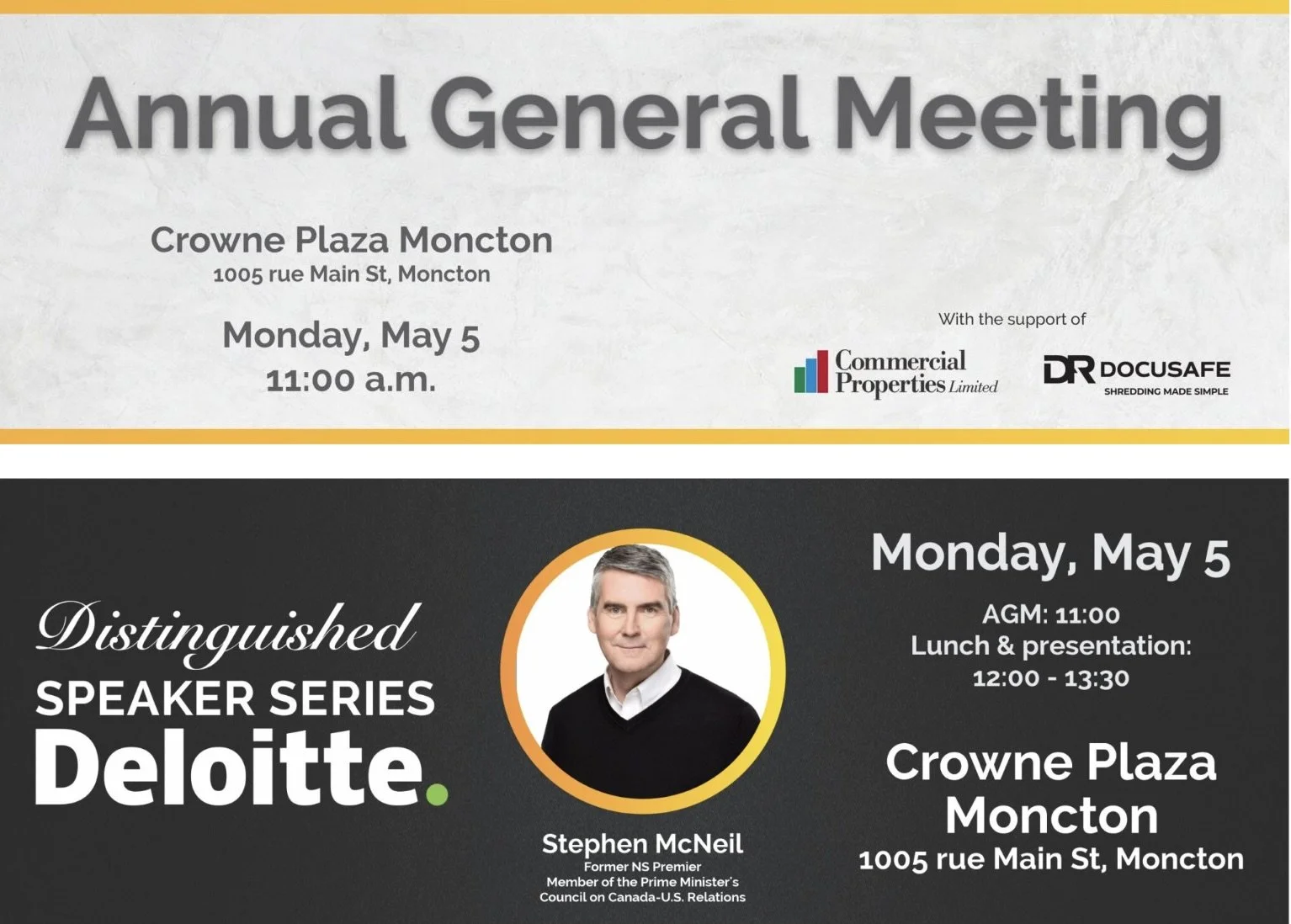 May 5, 2025 | 11:00AM - 12h00PM | Lunch and presentation with Stephen McNeil | 12:00PM - 1:00PM